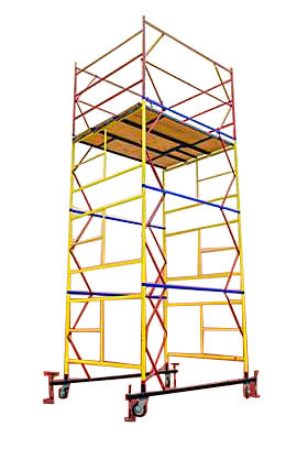 Благодаря своей сборно-разборной конструкции, оснащенной колесами на жестком основании передвижная вышка тура достаточно быстро устанавливается и демонтируется, а также имеет высокую мобильность и легкую транспортабельность, что зачастую является необходимым условием при внутренней отделке строительных объектов.